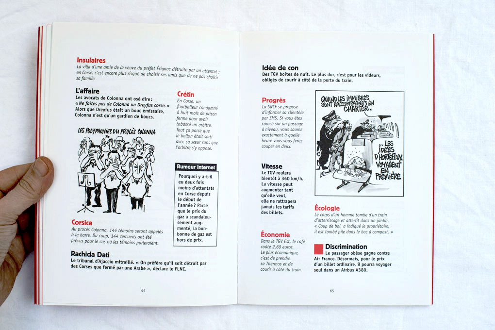 Le livre offre un panorama de petites perles journalistiques, de formules absurdes ou involontairement comiques, relevées dans la presse et mises en valeur par l’équipe de Charlie Hebdo. Chacune de ces brèves fonctionne comme un éclat de rire instantané, parfois grinçant, toujours savoureux, qui témoigne de la capacité du journal à pointer les contradictions, les travers et les ridicules de notre société.